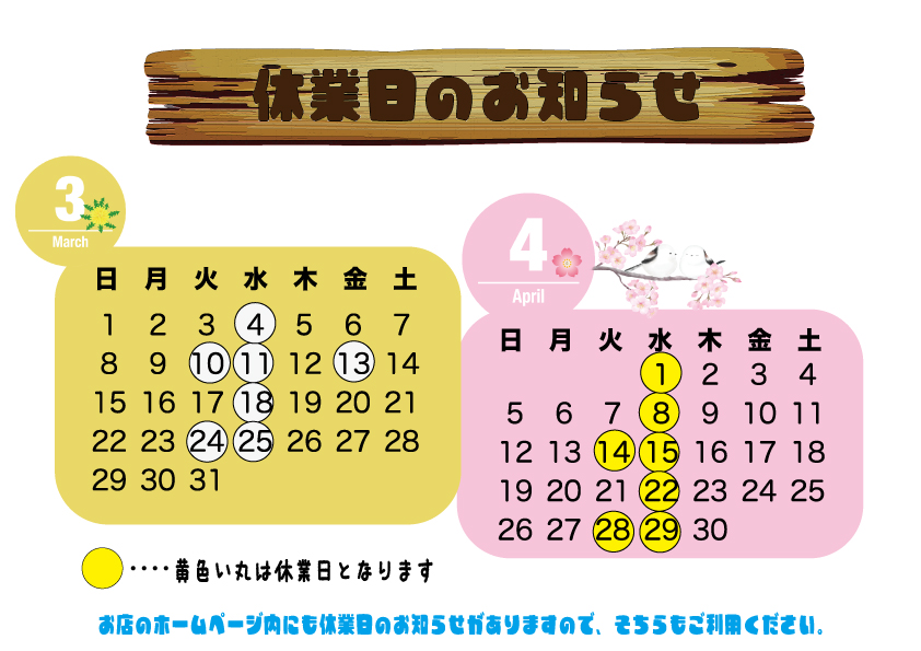 KAERU HAIR 3月〜4月の休業日のお知らせ